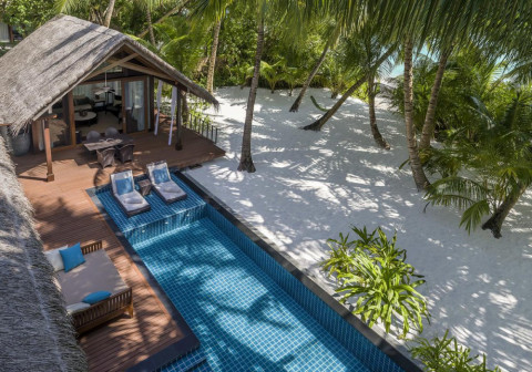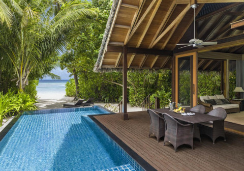 16 номеров Deluxe Pool Villas (189 кв. м, виллы расположены в восточной части острова рядом с коралловым рифом, имеют собственный сад, обеденную зону под открытым небом)
