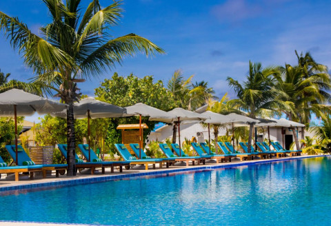 Palm Villas (50 кв.м, номера в блоках по два номера, в окружении тропического сада с видом на восход и всего лишь в 5 метрах от берега, выходят на сторону океана (есть небольшая лагуна))
