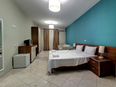 Небольшой отель с 26 номерами и предлагает одноместные, двухместные и трехместные номера. Некоторые из них с видом на море предлагают прекрасный вид на пляж.