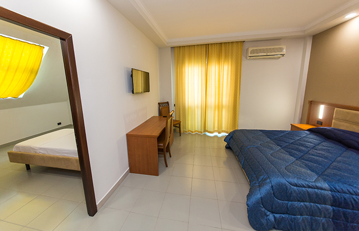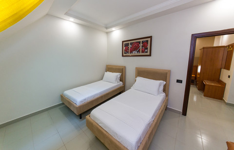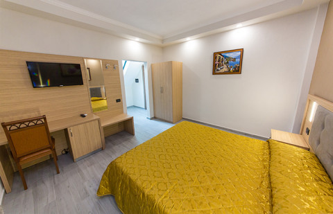FAMILY room, около 30 м², двухкомнатный номер с балконом, с одной двуспальной и двумя односпальными кроватями. Комнаты в номере разделены межкомнатной дверью. Всего в отеле 2 номера.