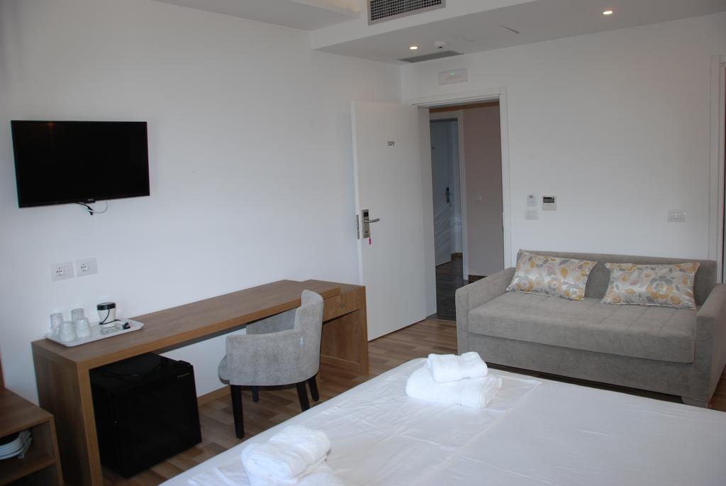 Standard DBL Room with balcony: 17 номеров (около 28 м2): двуспальная кровать. 5 номеров имеют вид на бассейн, 12 номеров — вид на море. В трех номерах с видом на море находится кресло, на котором может спать ребенок до 3-х лет.