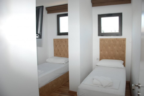 Standard TWIN Room with balcony: 5 номеров (около 28 м2): две односпальные кровати. Два номера имеют вид на море, 3 номера — вид на бассейн.