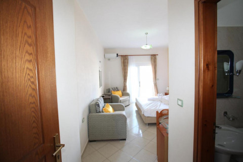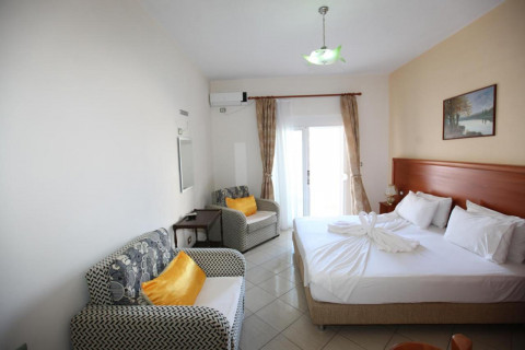 Семейный номер с видом на море - 35 кв.м (2 односпальные кровати, двуспальная кровать. Размещение 4+1).