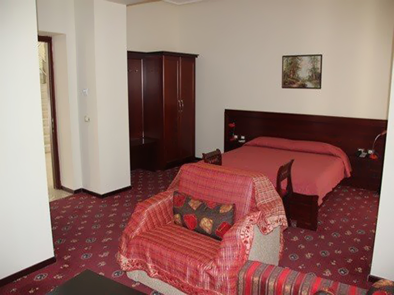 SUITE – около 28–30 м², SV, однокомнатный улучшенный номер с 1 двуспальной кроватью и гостиной зоной. В ванной комнате установлена ванна. Максимальное размещение: 2 взрослых и 1 ребёнок. Всего в отеле – 3 номера.