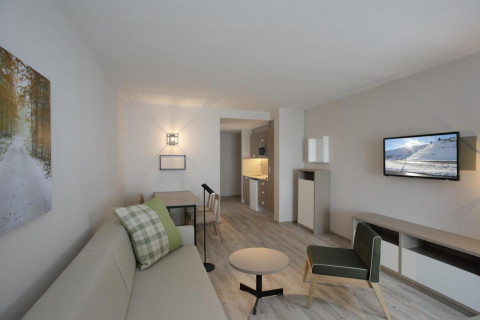 - 33 Apartment 2/4 pax (40 кв.м, 2 кровати 190x90 см, 1 раскладывающийся диван для двоих, кухня с кухонной утварью, холодильником, микроволновой печью, керамической плитой и кофемашиной);