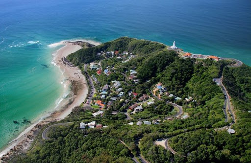 Отдельного внимания заслуживает маяк на мысе Байрона (Cape Byron Lighthouse). Это белоснежное здание построено из бетонных блоков в самом начале прошлого века, в 1901 году. Эго архитектором стал Чарльз Хардинг. Всего за два года была расчищена площадка под строительство, и на вершине 94-х метровой скалы появился красавец-маяк. Его оптическая система состояла из 760 тщательно отполированных стекол, произведенных парижской компанией «Societe des Establishment». Общая масса линз составляет восемь тонн. Свет в систему подавался от мощной концентрической керосиновой лампы с шестью фитилями. Позднее лампу заменили на более мощную и совершенную. Лишь в 1956 году к маяку было подведено электричество. Такое нововведение положительно повлияло на интенсивность света.