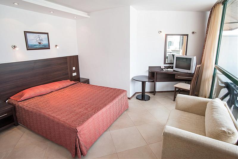 1BEDROOM APARTMENT: oдна двуспальная или две односпальныe кровати, гостиная с раскладным диваном /140cм/, оборудованный кухонный уголок с посудой, плитой; 1 ванная комната (с ванной или душем), макс. 2в.; 2в.+2р.; 53-86 кв.м.;
