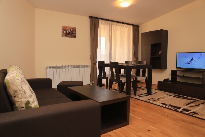 1 BEDROOM APARTMENT : 2 помещения: гостиная с раскл. диваном и кухонным уголком/электрический чайник, холодильник, тостер/; спальня с 1 большая односпальная кровать; 1 ванная комната с душем или ванной; балкон; макс. 2в.+3р.; 55 м2;