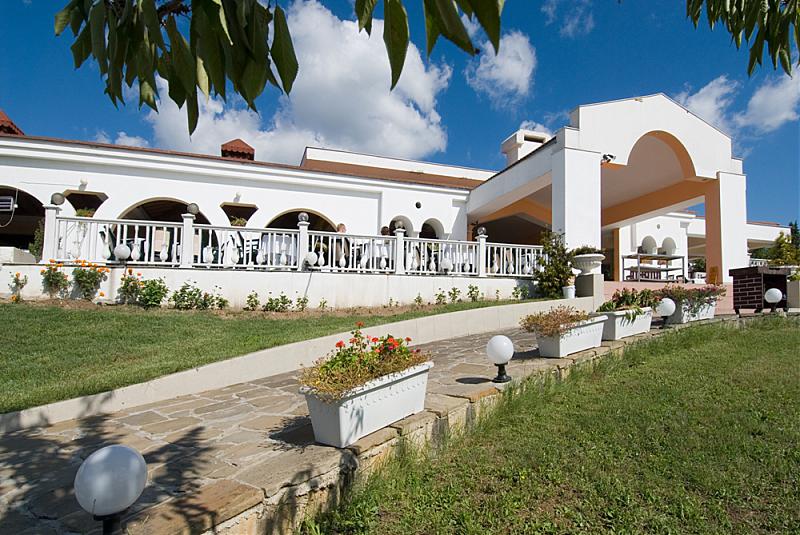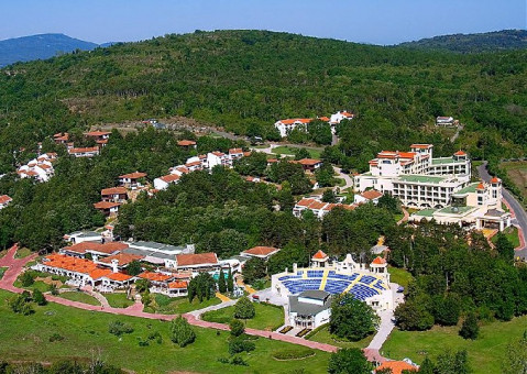 В курортном поселке Дюни, в 150-200 м. от пляжа. 293 номера расположены в виллах.