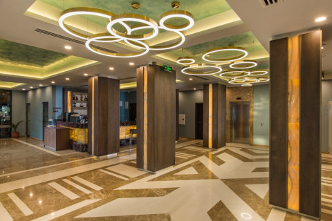 Отель расположен в курортного поселка Кранево, в 5 км к югу от Албены и в 5 км к северу от Золотых Песков, на самом берегу моря. 155 полностью отремонтированных роскошных номеров на 2019 год.