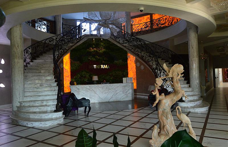 Комплекс "Therma Eco Spa & Kids & Villas" расположен на территории площадью 4 га, что позволило разместить на этой территории два пятизвездочных отеля на 600 отдыхающих с закрытыми и открытыми бассейнами с минеральной водой, открытым спортивным бассейном олимпийского размера, закрытую ледовую арену предназначенную как для профессиональных спортсменов, так и для любителей покататься на коньках, восемнадцать комфортабельных двухэтажных вилл, оборудованный песочный пляж с ресторанами, спортивные площадки, бары и пиццерию, зеленые парковые зоны с растениями из разных стран.