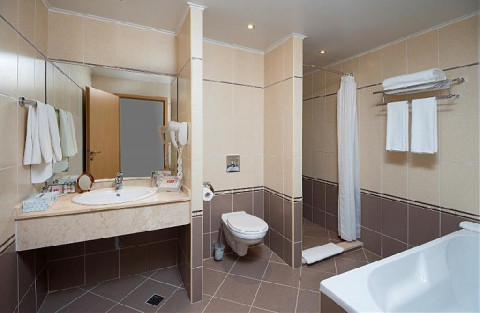 DBL STANDARD: две односпальные кровати, 1 ванная комната с душем; макс.2в.+1р., 3в., 25м2; с видом на парк, море и на бассейн;