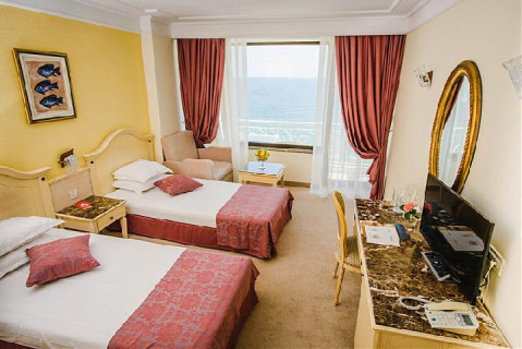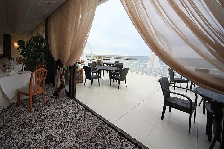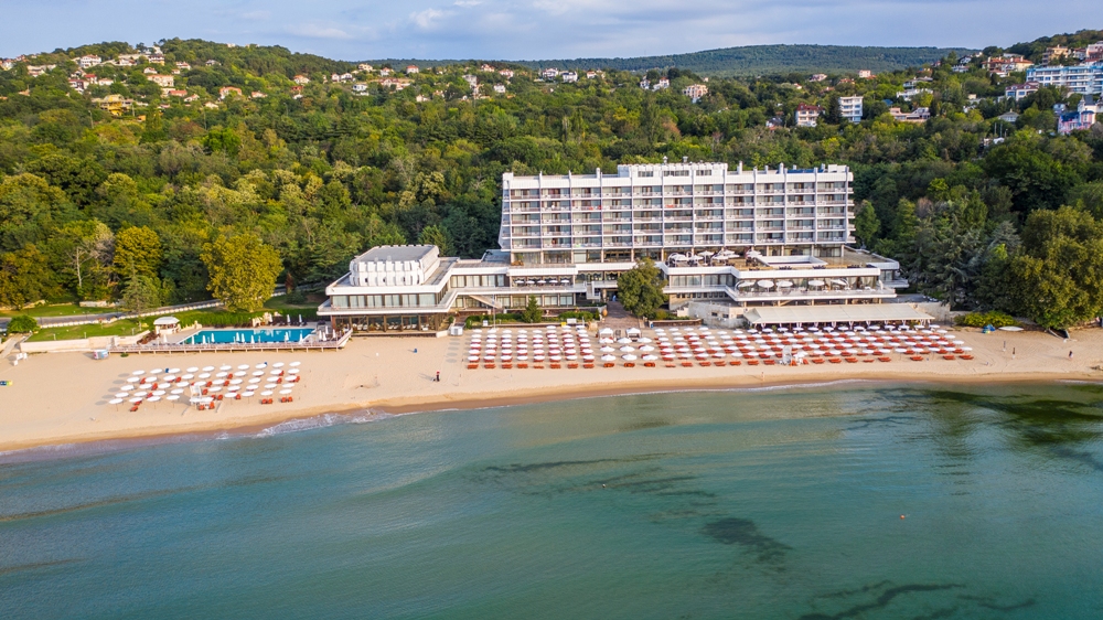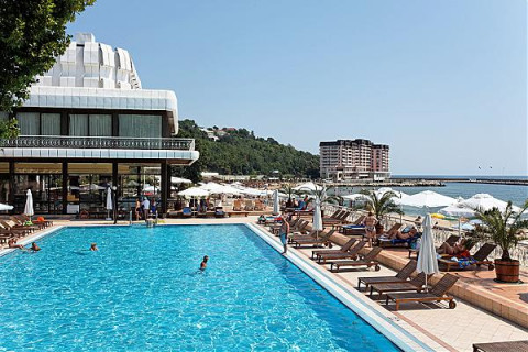 В элитном комплексе на самом берегу моря. 135 номеров/112 двухместных номера -54 с видом на парк, 58 с видом на море; 23 апартаментa - 5 с видом на парк/2 помещения/, 10 корнер с видом на парк/ одно Г-образное помещение, 2 балкона/ и 8 корнер с видом на море/одно Г-образное помещение, 2 балкона с видом на море.