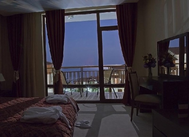 В южной части курортного города Святой Влас, на берегу моря. 54 номера в отеле