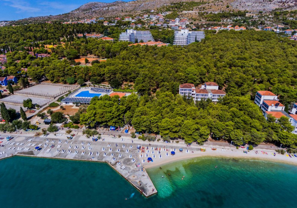Отель расположен в красивой бухте, окруженной сосновым лесом, недалеко от рыбацкой деревушки Seget Donji, в 4 км от Трогира, в 7 км от международного аэропорта. Отель состоит из 2 основных корпусов (А и В) и 2 дополнительных корпусов (С и D).