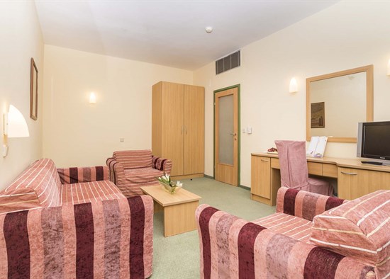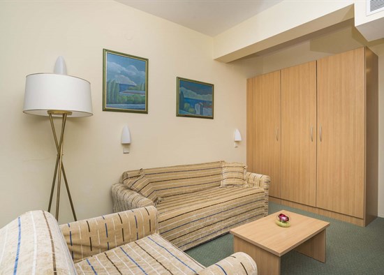 4 номера Junior Suite (45 кв.м, балкон, сторона парка, спальня с кроватями twin + гостиная с диваном, ванная комната с ванной, макс. 3 взр. / 2 взр. + 2 реб.)