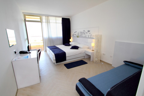1 номер Junior Suite (31-34 кв.м, вид на море, балкон, верхние этажи, спальня + гостиная с диваном, джакузи, макс. 4 взр. )