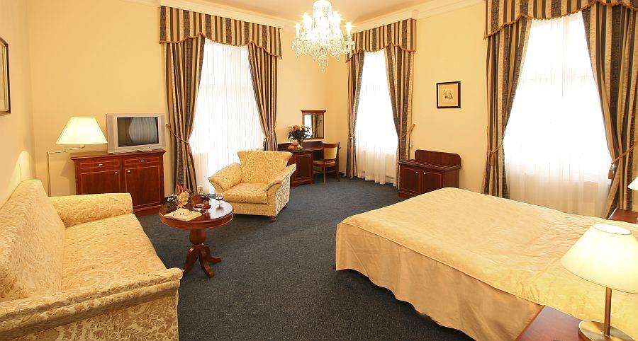 Апартаменты "Юниор" | площадь около 16,30 м2 (спальня) + около 14 м2 (жилая комната) + прихожая 3 м2 + ванна 4 м2 | с балконом, спальня + небольшая жилая комната | дополнительная обстановка – диван и кресло | ванная комната, оборудованная биде