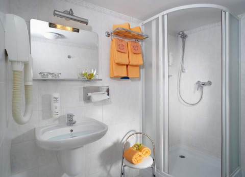 Suite - Современный люкс с просторной спальней и гостиной. Ванная комната с ванной и отделенным туалетом, фен. Две бутылки минеральной воды (0,33 л) в день приезда бесплатно. Также в номере есть кофеварка для эспрессо и электрический чайник с набором для приготовления чая и кофе. Бесплатное использование сауны (ежедневно с 8:00 до 11:30 и с 12:30 до 20:00).