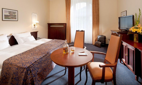 В отеле 64 номера, из которых 6 люксов. Просторные, светлые номера и люксы оформлены в классическом стиле девятнадцатого века. Все номера и люксы, выходящие на юг или юго-запад имеют вдохновляющие виды, с великолепным панорамным видом на Марианские Лазне. Площадь апартаментов от 30 м ² до 45 м ², полулюксы и люксы оснащены роскошными оборудованными ванными комнатами из мрамора.
