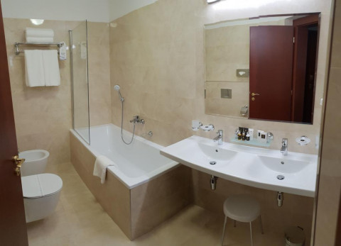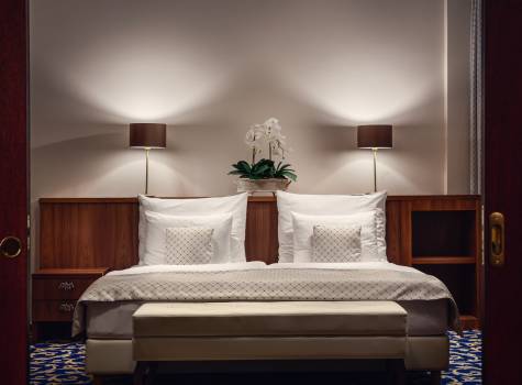 Многообразие архитектуры исторических зданий было полностью соблюдено и подчеркнуто в интерьерах номерного фонда отеля. К выбору гостей различные типы и решения дизайна для комфортного проживания. Номера отеля различаются по цветовому исполнению, размеру, типу мебели и аксессуаров. Общая черта интерьерной подачи - стильная итальянская мебель во всех номерах.