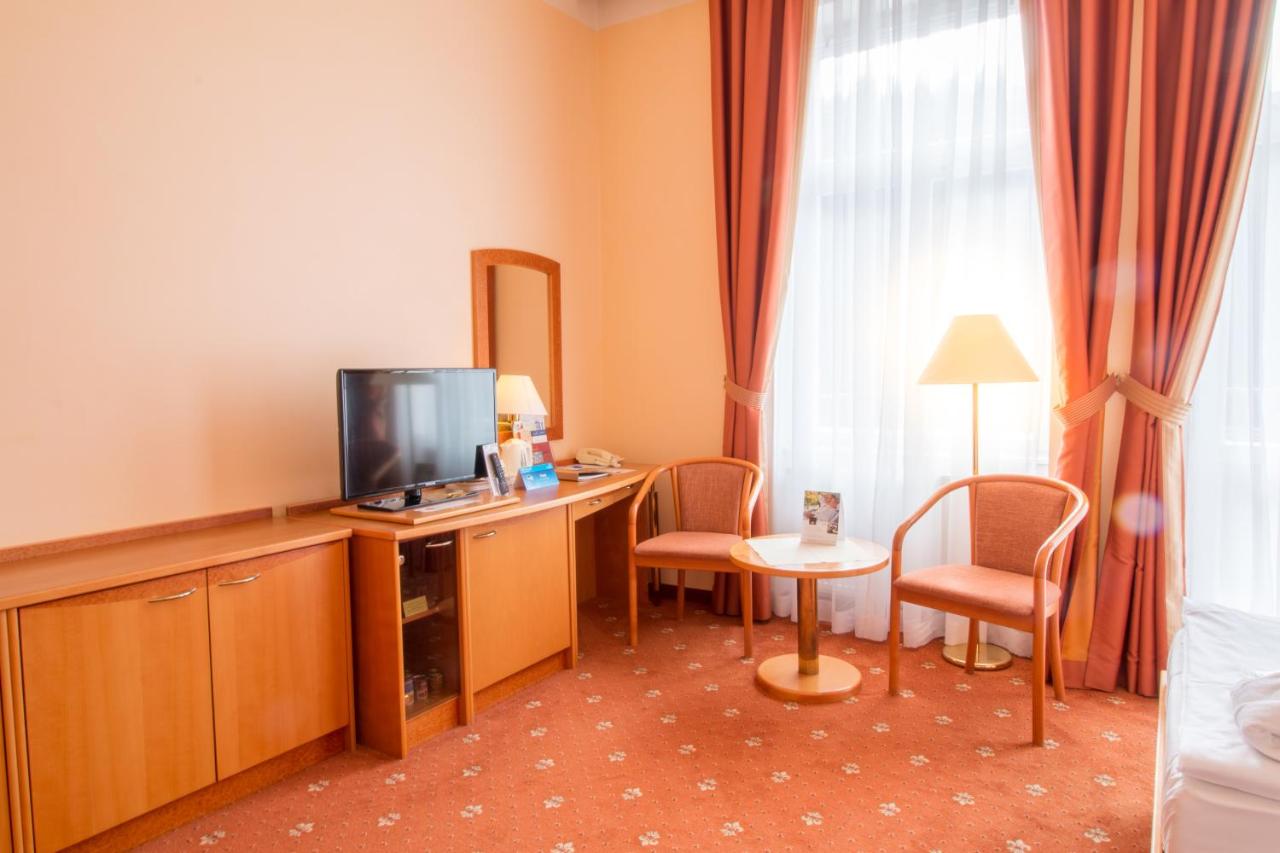 Великолепный архитектурный гостиничный комплекс Звезда, был построен в 1905 году. В отеле в свое время жили многие знаменитые гости, в том числе король Эдуард VII. Отель прекрасно расположен рядом с колоннадой и церковью Успения Девы Марии на площади Гёте, где всемирно известный немецкий поэт Иоганн Вольфганг Гёте встретил свою любовь - Ульрику. Уже с 1905 года отель Звезда является одним из самых любимых отелей города. Уникальный курортный комплекс Звезда, состоит из 3 отелей – Звезда, Империал и Неаполь, соединенных коридорами и является образцом курортной архитектуры и исторической ценностью центра курортной части города. В санаторном комплексе расположена соляная пещера и новый аквацентр с самым большим бассейном в Марианских Лазнях.
