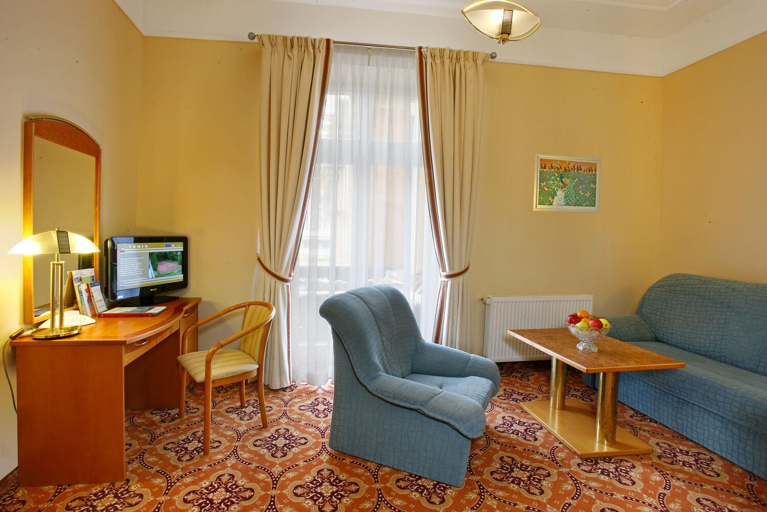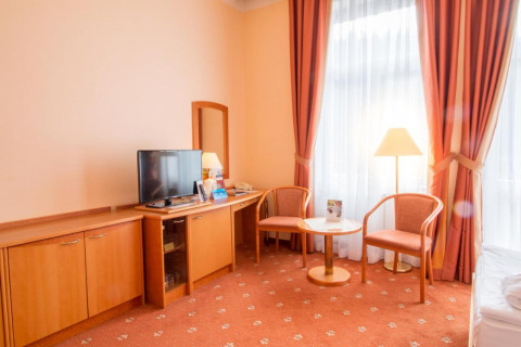 Suite (1 номер) | площадь номера 35 - 60 м2 | двухкомнатный номер с гостинной и спальней | набор для приготовления кофе | макс. 3 человека (2 человека на главной постели 180 х 200 см + 1 человек на дополнительной кровати) | возможность раздельных кроватей | ванная комната с ванной или душевой кабиной