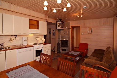 Кухонная плита/духовка, посудомоечная машина, посуда и кухонные принадлежности, холодильник и морозильная камера, микроволновая печь, электрический чайник, кофеварка, тостер, CD-плеер, DVD, телевизор, сушильный шкаф для одежды, утюг и гладильная доска, фен, кондиционирование, дрова, розетка для обогрева двигателя одного автомобиля, беспроводной доступ в Интернет, на втором этаже общее помещение для хранения лыж.