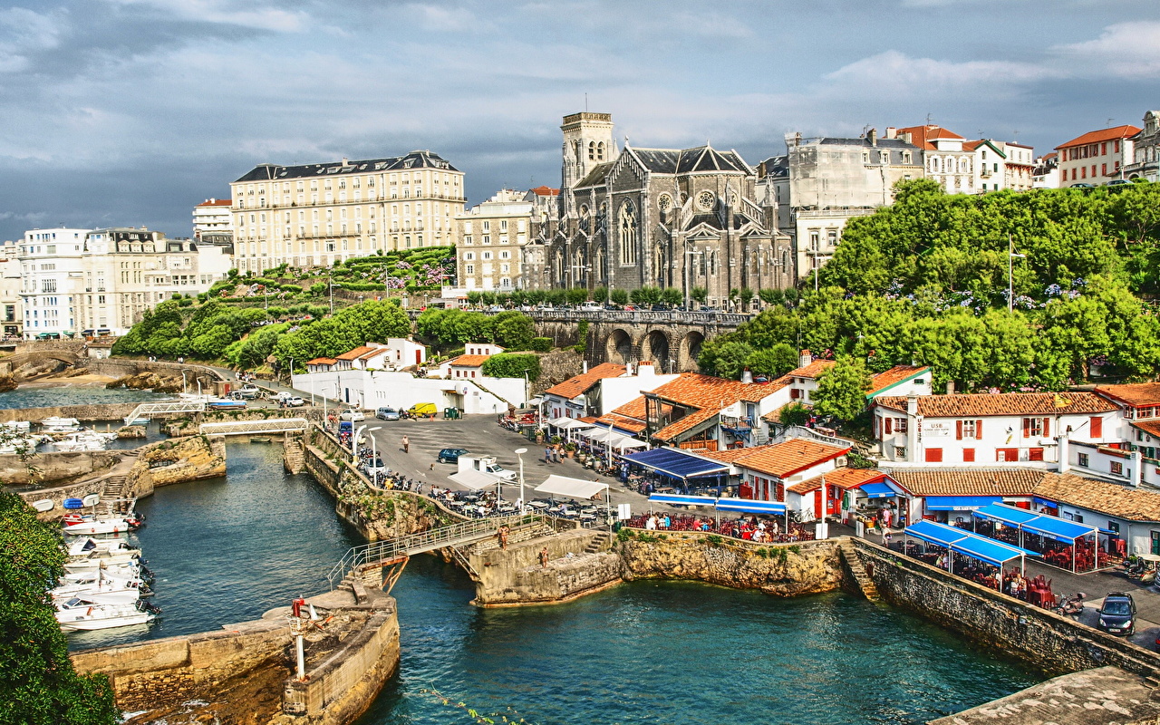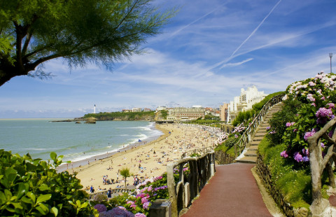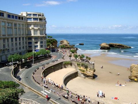 Биарриц - город на юго-западе Франции, в департаменте Атлантические Пиренеи, «Король пляжей и пляж королей», самый известный курорт атлантического побережья Франции. Расположен роскошный приморский курорт Биарриц вдоль Берега Басков на мысе святого Мартена. Департамент Атлантические Пиренеи называют французской Басконией. На всех административных зданиях департамента рядом с флагами и Евросоюза расположены и красно-зелёно-белые флаги басков.