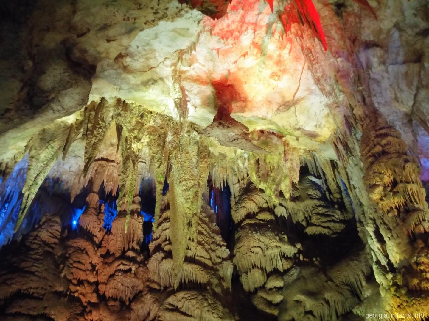В западной части Грузии, которая замечательно посещается во время тура по Грузии, находится уникальный природный объект –карстовая пещера Прометея. Она представляет собой 11-километровый тоннель, изобилующий сталактитами, сталагмитами, поделочными камнями.