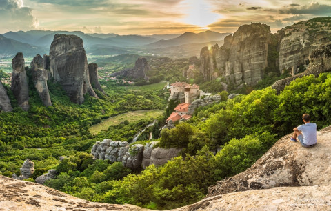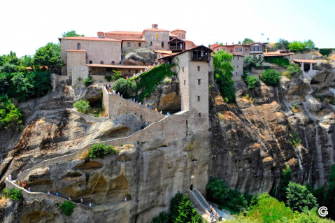 Метеора в переводе с греческого означает "Парящие в Воздухе". Комплекс наскальных монастырей расположен на окраине Фессалийской равнины. Основанный в 14 веке святым Афанасием Метеорским, наподобие афонского монашеского государства, он известен сегодня во всём мире. Наряду с Афинским Акрополем, Метеоры - самый популярный из греческих экскурсионных маршрутов. Здесь любой посетитель (даже китайский турист с неизменным фотоаппаратом:) становится немножко паломником. Духовное богатство православной Византии сохранилось здесь во всём своём великолепии. Монастыри сегодня являются не просто архитектурными памятниками прошлого, а ведут полноценную монастырскую жизнь, просвещая и укрепляя приходящих в них паломников. Способствуют продолжению традиций византийского церковного искусства. В Метеорах действует несколько крупных иконописных мастерских, посещение которых, так же, возможно. Из когда-то более чем двадцати монастырей сегодня действуют шесть: четыре мужских и два женских.