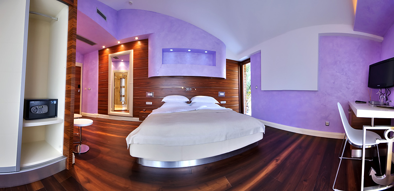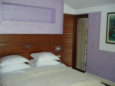 В DELUXE: Всего 4 номера в разной цветовой гамме, французская кровать, кондиционер, сейф (бесплатный), кабельное телевидение, телефон, доступ к интернету, душевая кабина, фен, косметика, французский балкон. Максимальное размещение -2 чел.