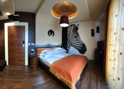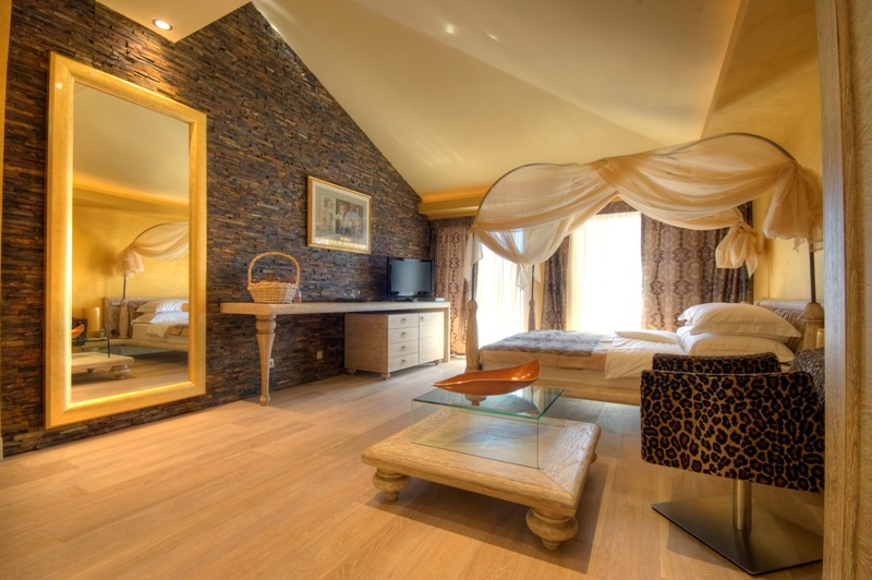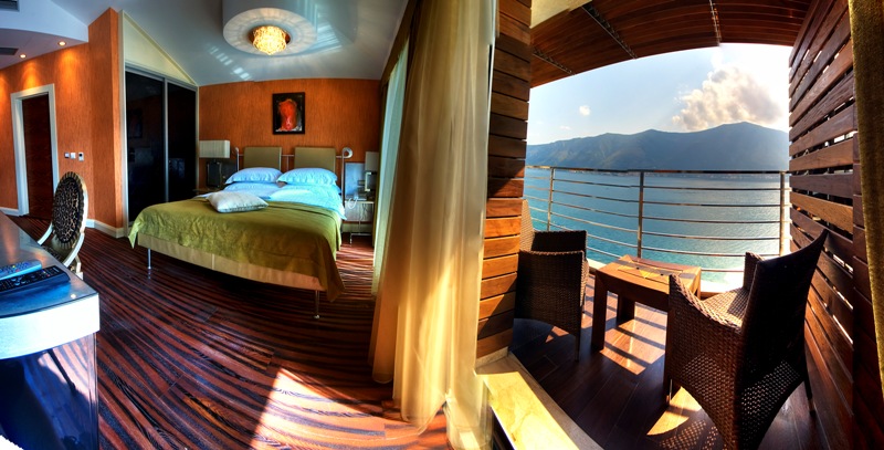 В отеле 10 двухместных номеров, категории: suite, deluxe suite и executive suite. Каждый номер исполнен в оригинальном стиле, с использованием дизайнерской мебели и изысканного вкуса. Название апартаментов говорит само за себя: Африка, Индия, Китай, Япония, Дубай и номера Delux. Апартаменты с видом на бухту и сад.