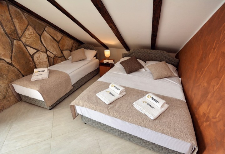 На вилле 3 этажа, всего 8 номеров категории студио и апартаменты. Уборка номеров, смена полотенец – каждый третий день, смена постельного белья – через семь дней.