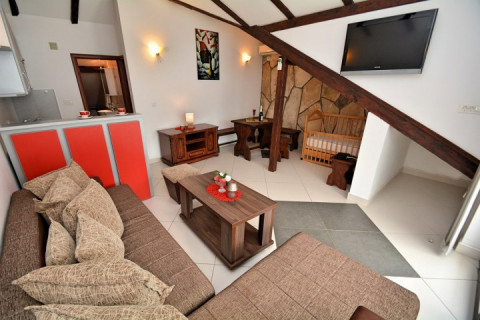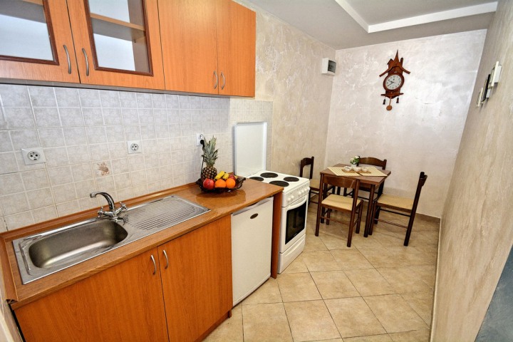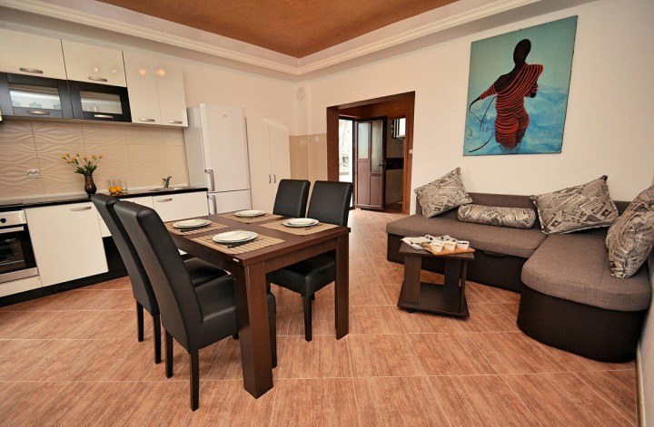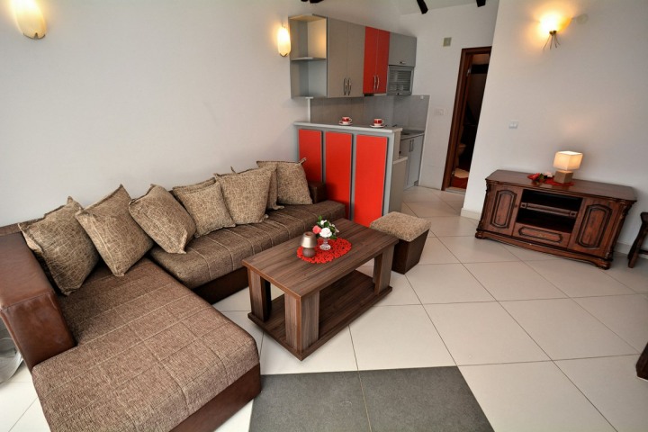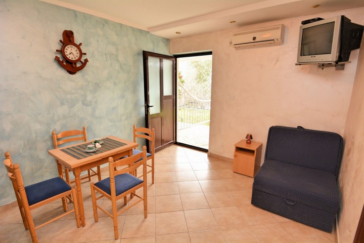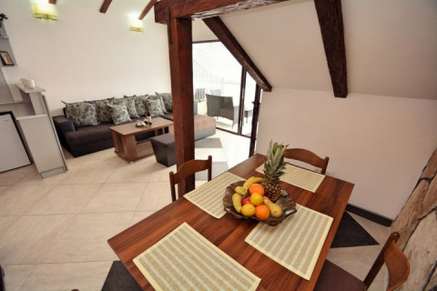 В АРР 04 PRIZ: двухкомнатный апартамент, с гостиной в которой находится раскладывающийся диван, столовая зона, полностью оборудованная кухня, в спальне французская кровать, апартаменты расположены на первом этаже, кондиционер, спутниковое ТВ, Wi Fi интернет, санузел с душевой кабиной, терраса. Максимальное размещение- 4 человека.