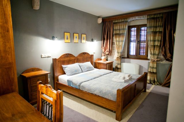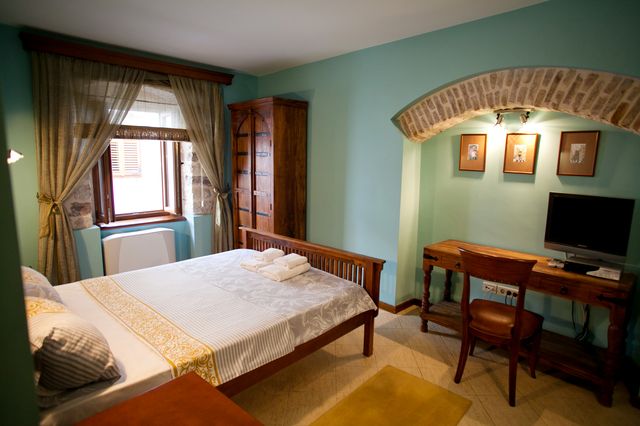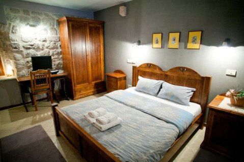 ROZE/ AZURE / DOVE ROOM: Просторный номер с ванной комнатой (французская кровать), изысканно декорированный в средиземноморском стиле. Традиционная для которских палат деревянная мебель в старинном стиле органично сочетается с фрагментами каменной кладки - характерным элементом интерьера аристократических домов на Адриатике.