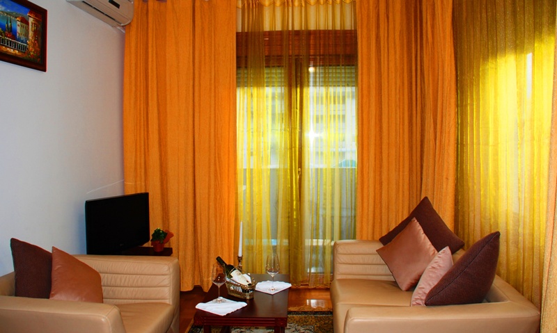 В EXECUTIVE: однокомнатный номер, французская кровать, гостиная зона, журнальный столик, кухня, koндиционер, кабельное телевидение, беспроводной интернет, ванная комната с массажной душевой кабиной, холодильник, балкон. Максимальное размещение- 3 чел. (40 м2).