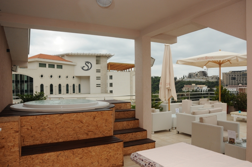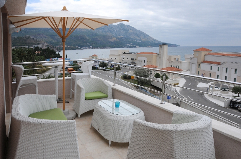В 150м от песчано-галечного муниципального пляжа Бечичи (лежак – 2 евро, зонтик – 2 евро), куда можно добраться по надземному переходу.