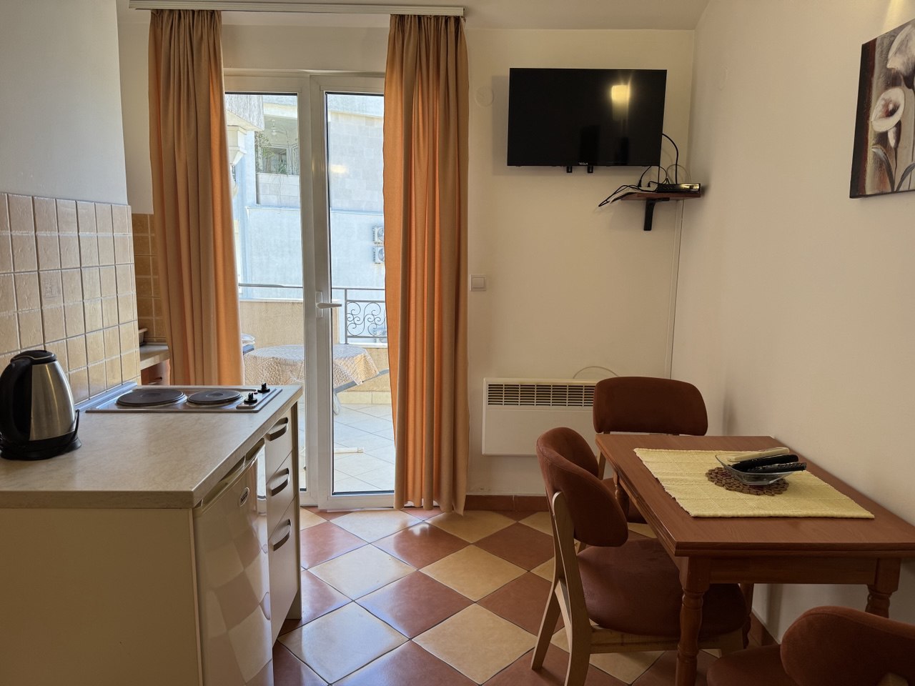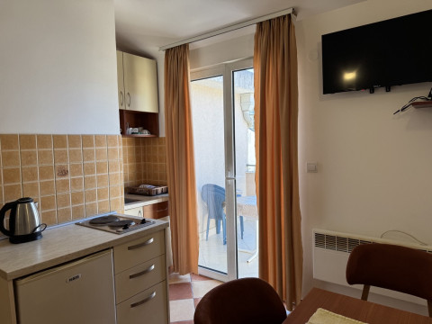 Studio 02: два окремі ліжка або одне велике, міні-кухня, кондиціонер, кабельне телебачення, холодильник, душ, балкон