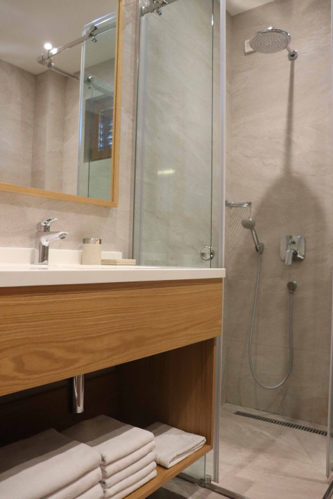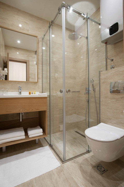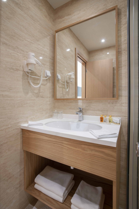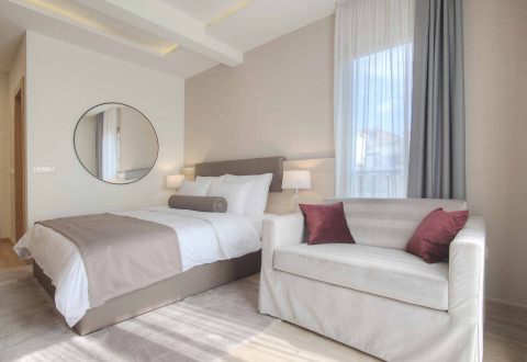 В Superior DBL: французская кровать и раскладной диван, кондиционер, спутниковое ТВ, Wi Fi интернет, мини бар, сейф, чайник, санузел с душевой кабиной, балкон с видом на город. Максимальное размещение: 4 чел. Площадь: 24 м2.