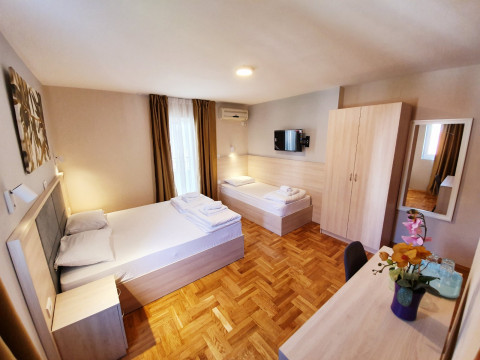 В центре Будвы, в 50 м от центрального рынка и супермаркета, в 100 м от почты, в 300 м от Старого города и пляжа Могрен. В 23 км от аэропорта Тиват и в 60 км от аэропорта Подгорица.