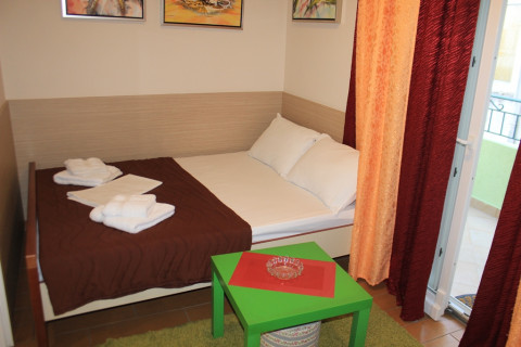 В STD: Кондиционер, сейф, холодильник, электрочайник, фен, утюг, гладильная доска, балкон, сушилка, душевая комната, кабельное телевидение (с одним русским каналом), беспроводной интернет. Максимальное размещение 4 человека.