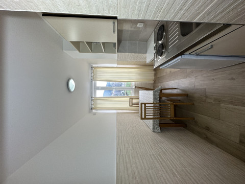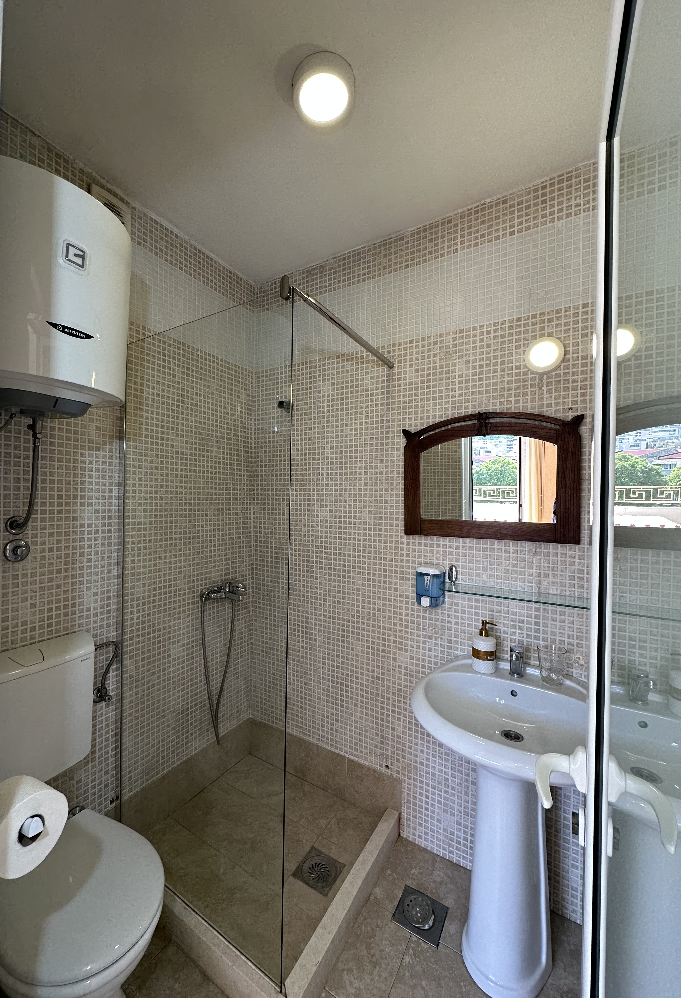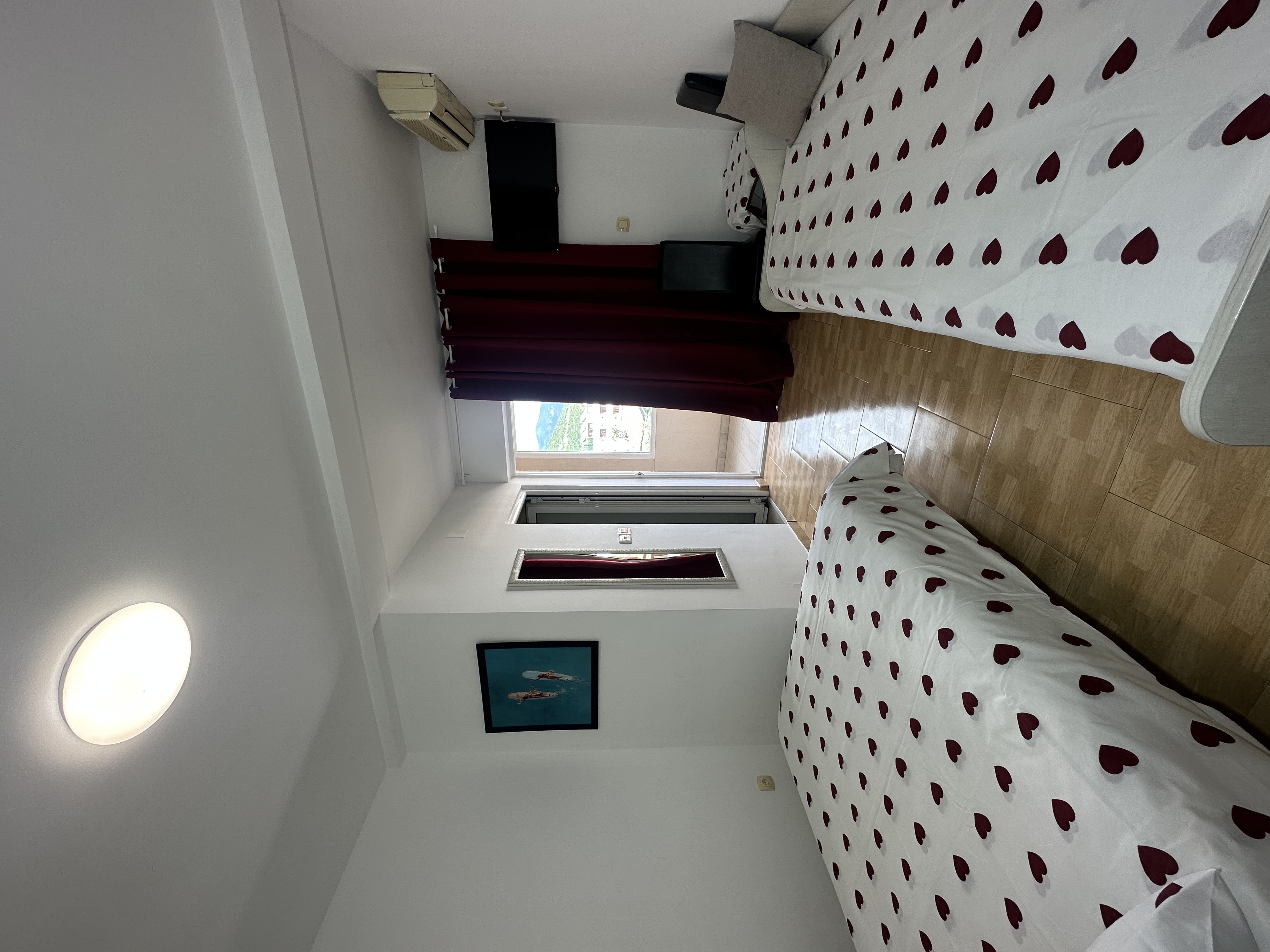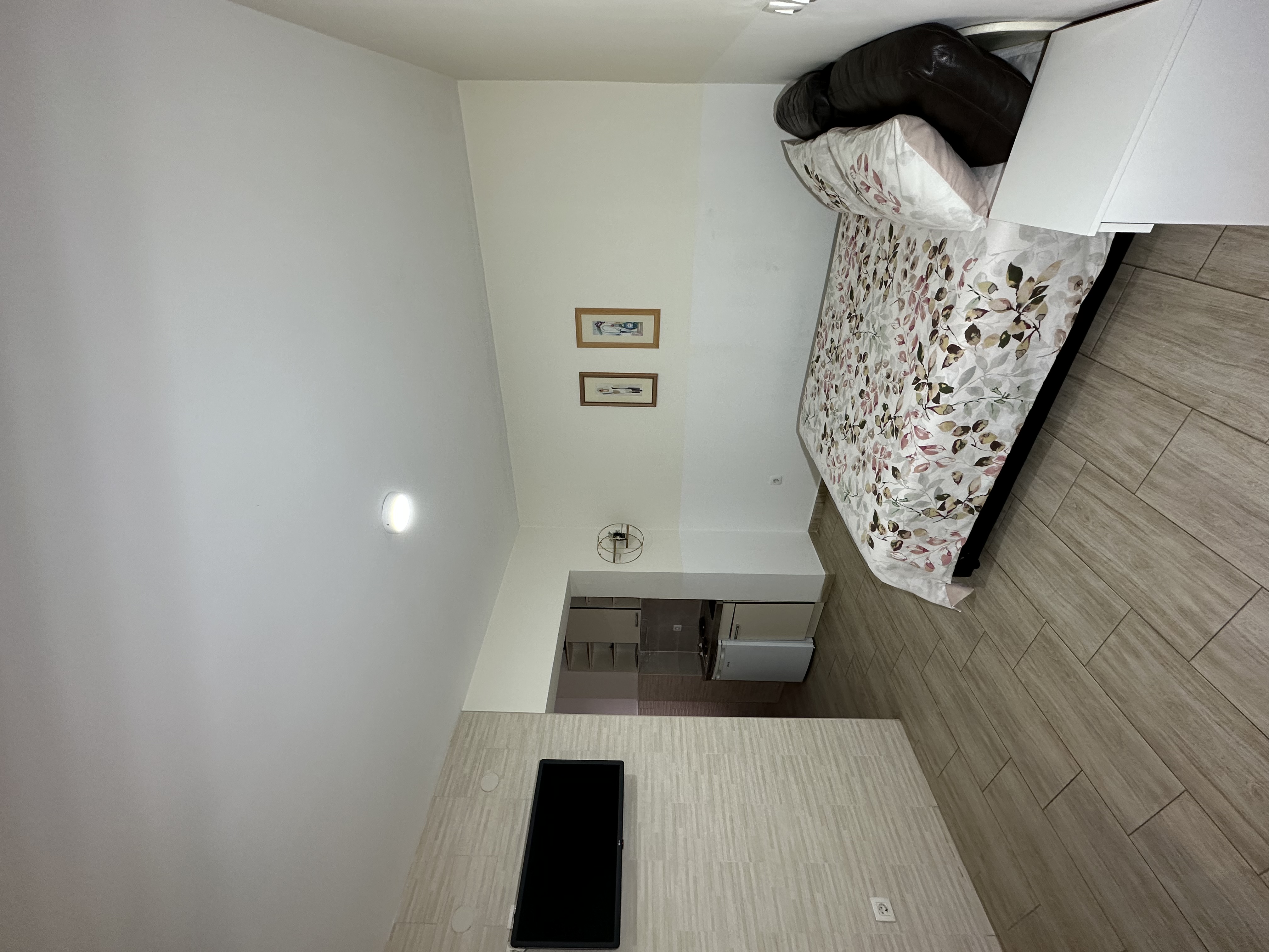 STUDIO 02+1: стандартний двомісний номер з додатковим ліжком, кондиціонер, телевізор, міні-холодильник, повноцінна кухня на терассі, санвузол, балкон, двоспальне ліжко та односпальне ліжко.