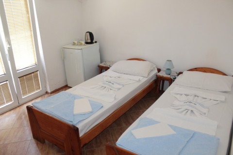 На вилле - 6 двухместных и 2 трехместные студио. Один номер без балкона. Уборка и смена полотенец – каждый третий день, смена постельного белья – через семь дней.