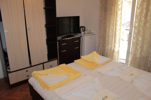 В АРР: одвухкомнатный номер, кухня, французская кровать, дополнительно 3 раздельные кроати, кондиционер, холодильник, чайник, TV с русским каналом, доступ к Интернету (бесплатно), просторная ванная комната, балкон. Максимальное размещение- 5 человека.