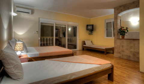 B STUDIO 03: просторный номер расчитан на 3 человека. Французская кровать, дополнительная кровать, кухня, необходимая посуда, холодильник, кондиционер, телевизор, балкон.