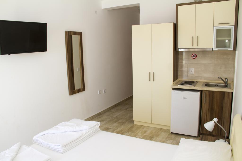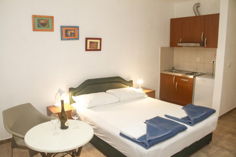 В STUD 03: однокомнатная студия с французской и дополнительной кроватью, полностью оборудованная кухня, кондиционер, спутникове ТВ, Wi Fi интернет, санузел с душевой кабиной, терраса – сторона моря или с видом на море. Максимальное размещение – 3 человека.