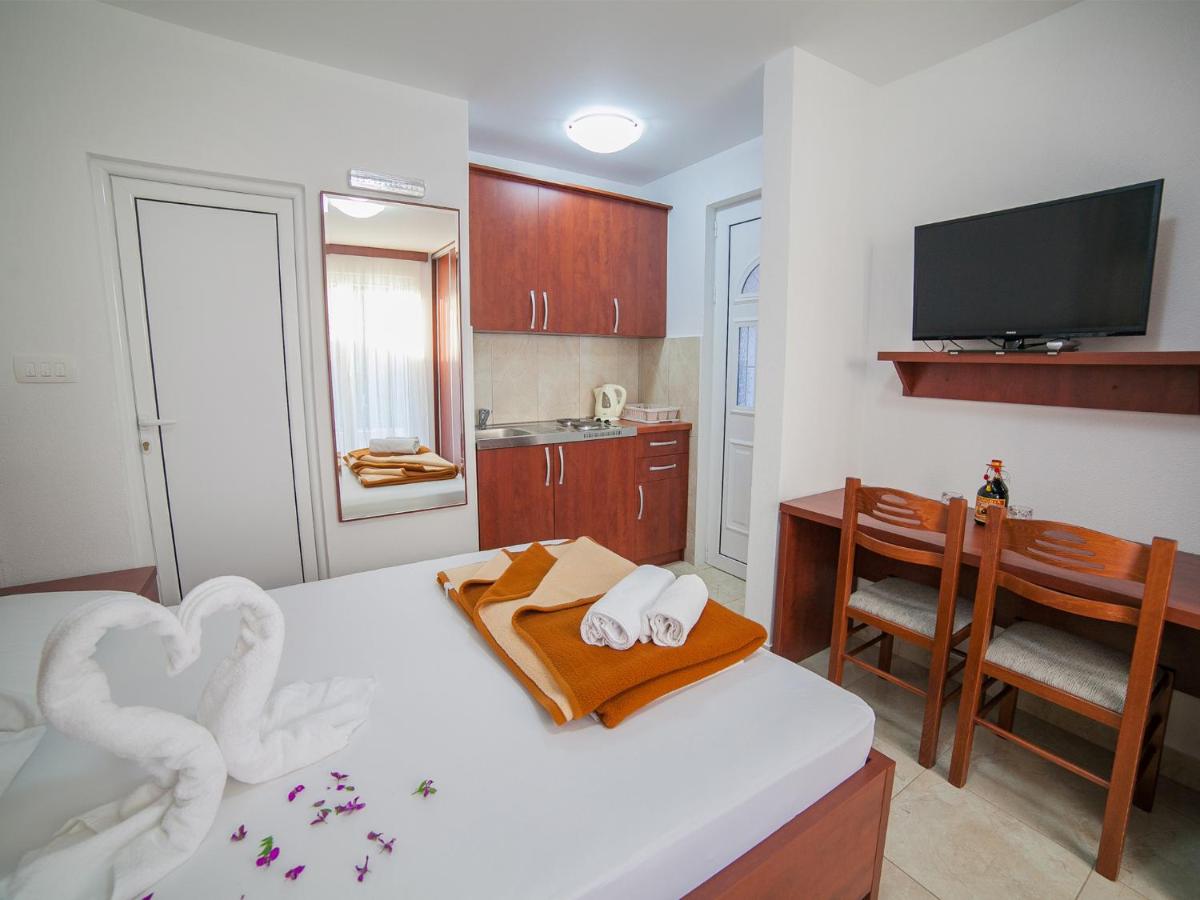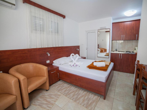 расположены в тихой части Петровца – районе Брежине. На вилле 10 номеров-студио, в том числе двух-, трехместные номера. В каждом номере: кондиционер, телевизор, мини-кухня, холодильник, интернет, балкон или общая терраса. Утюг и фен под запрос.