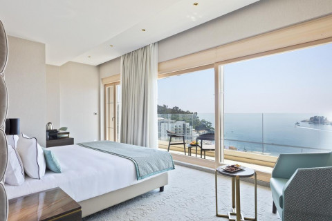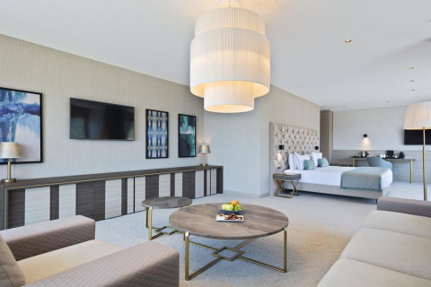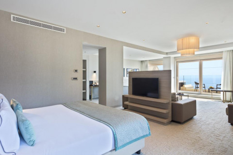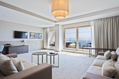 В Junior Suite: французская или раздельные кровати, раскладывающаяся софа, кондиционер, спутниковое ТВ, Wi Fi интернет, мини бар, сейф, санузел с душевой кабиной, балкон с видом горы, или с видом на море. Площадь: 33-43 м2. Максимальноре размещение: 3 взр или 2 взр+2 реб.