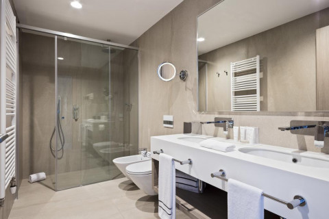 В DBL STD: французская или раздельные кровати, софа, кондиционер, спутниковое ТВ, Wi Fi интернет, мини бар, сейф, санузел с душевой кабиной, балкон с видом на город или горы. Площадь: 22 м2. Максимальноре размещение: 2 взр+1 реб.